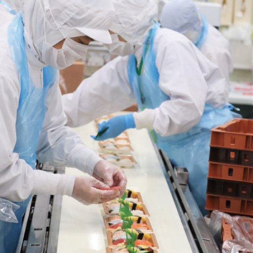 コンビニエンスストア向けの手作りデザート・おにぎり・寿司・弁当等の米飯類と惣菜・サラダ等を製造しております。また製麺機を導入し自家製麺の生パスタやそばなどの調理麺製造と日々成長しながら、食の「美味しさ」「安全性」「感動」を追求しております。